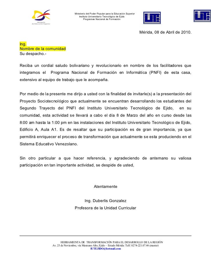Hacer llegar una carta solicitando la asistencia a un evento como pueda ser el cine, el. Invitar a un amigo a compartir una comida o una cena. Barranquilla, le extiende la invitación formal para visitar nuestra institución. Lineamientos para las propuestas de proyecto.