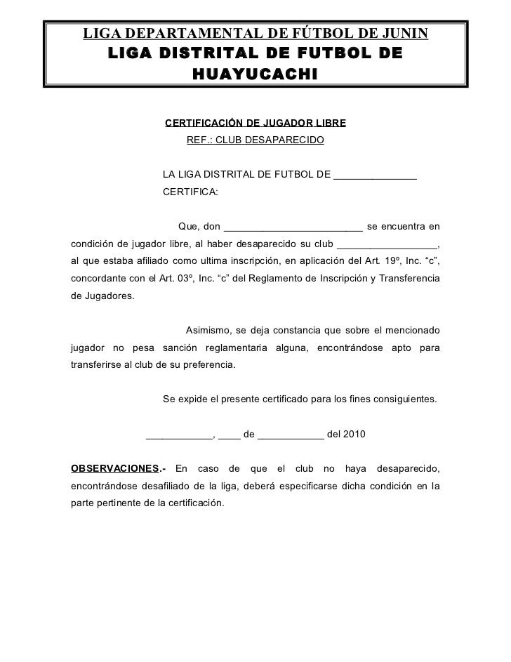 Modelo de carta de libertad deportiva