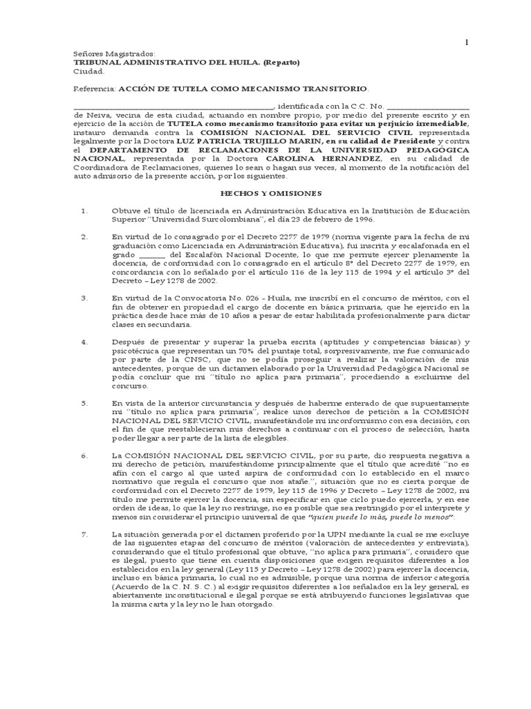 EsupuEstos dE la acción dE tutEla. Documents › modelo_de_minuta. Por último, en cuanto a los temas relevantes del procedimiento y acción de tutela de derechos fundamentales, el estudio se centra en el esencial de los derechos. Seguidamente se estableció una mesa de trabajo entre las dos Organizaciones.